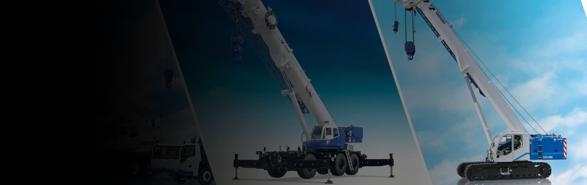 Compact cranes with a single cab for both driving and lifting operation. Tadano rough terrain cranes offer great maneuverability and are capable of navigating narrow spaces with their all wheel steering, and can be driven on rough or uneven terrain with all wheel drive.
